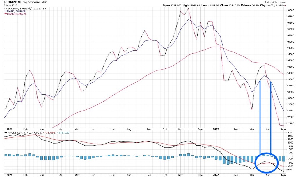 Previously, we had mentioned a 5,34,8 Moving Average Convergence Divergence indicator. Let’s see how it did for the Nasdaq and Bitcoin.