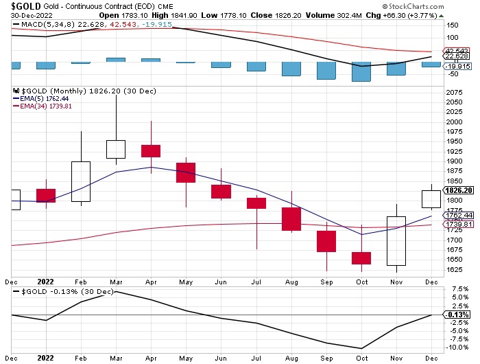 Gold was close to breakeven in 2022. A buy signal was close to being generated.