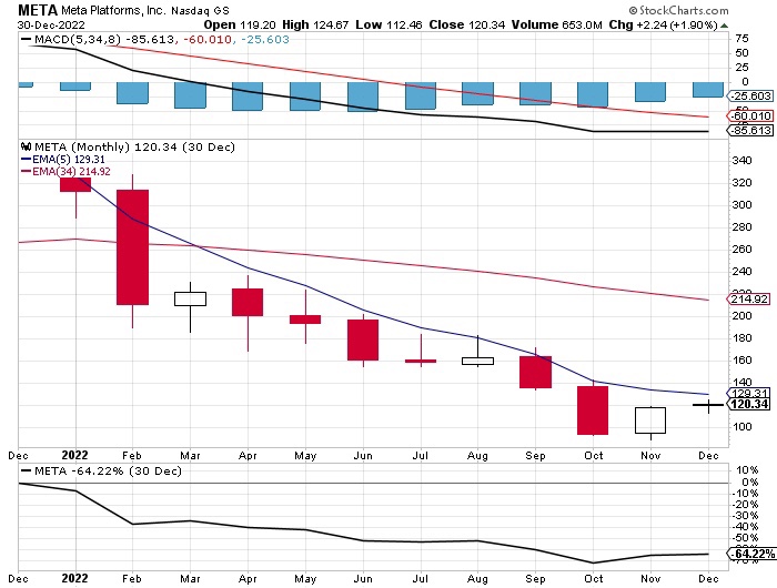 Meta’s investment in the metaverse did not payoff. The shares lost -64.22% last year, worse than Bitcoin!