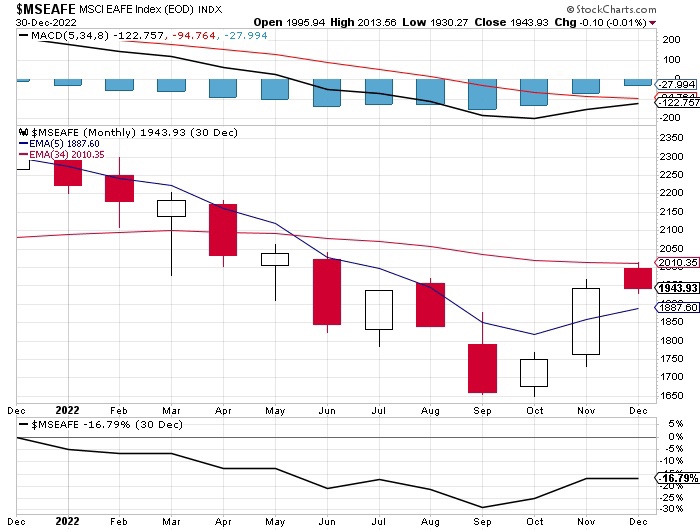 The EAFE acronym stands for Europe, Australasia and Far East. Markets outside the US were down -16.79%.