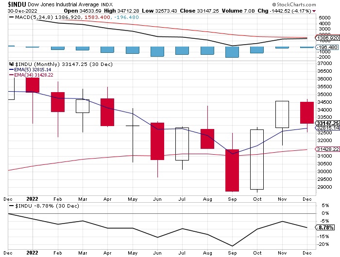 The largest 500 companies in America were down -19.44% in 2022. No monthly buy signal yet.