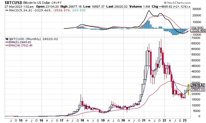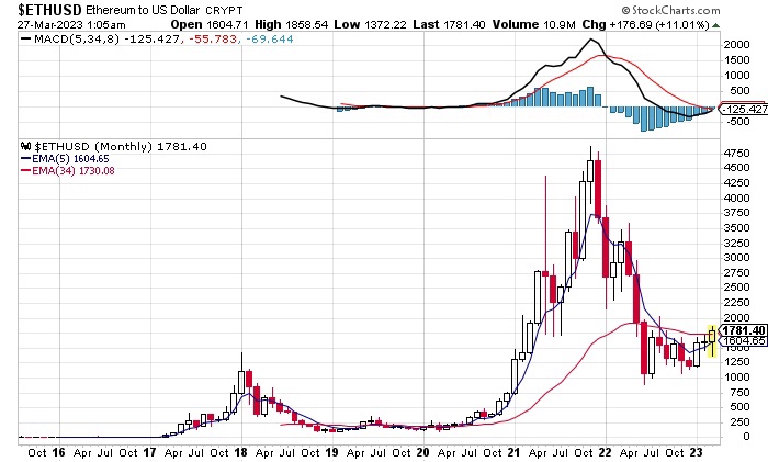 Ethereum has benefited like Bitcoin with the current bank panic. We patiently wait for our Ethereum to come back to breakeven.