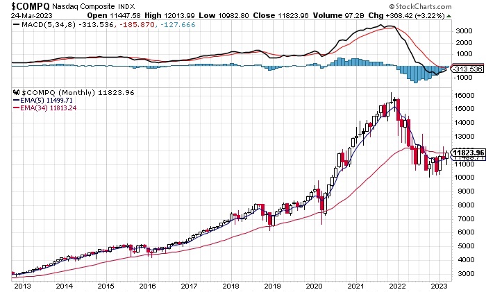 Of all things, the Nasdaq was a port in the bank run storm. We are close to a buy signal on a monthly basis.