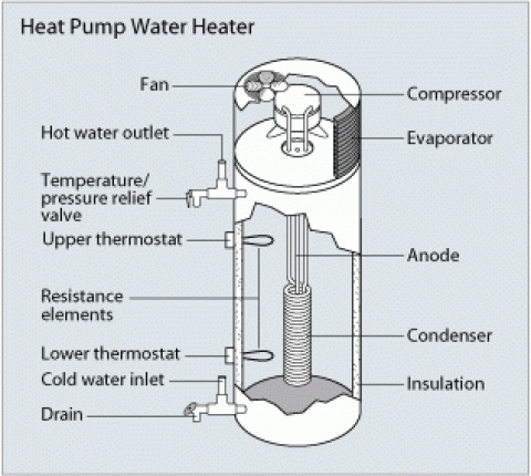 Heat pump water heaters use electricity to move heat from one place to another instead of generating heat directly. Therefore, they can be two to three times more energy efficient than conventional electric resistance water heaters. To move the heat, heat pumps work like a refrigerator in reverse.