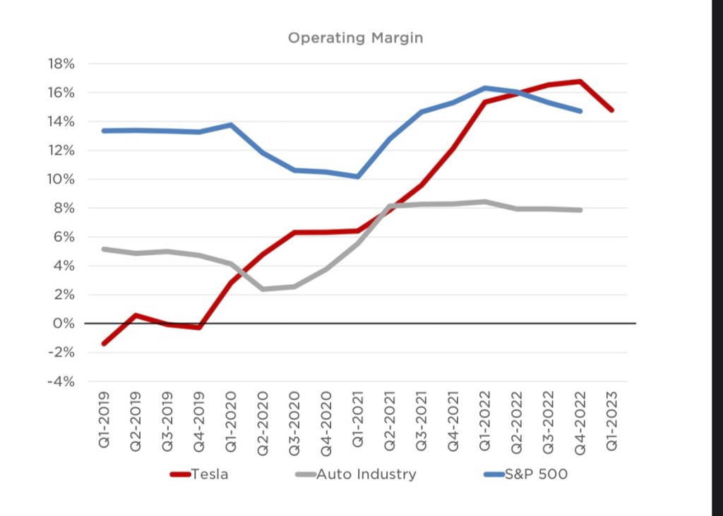 Operating margin is noted as 11.4% on page 4, again a steeper dive than shown above. 11.4% is slightly above the Auto Industry in Q4. Tesla sold more vehicles balanced against each vehicle costing more to produce, specifically from under utilization of new factories.