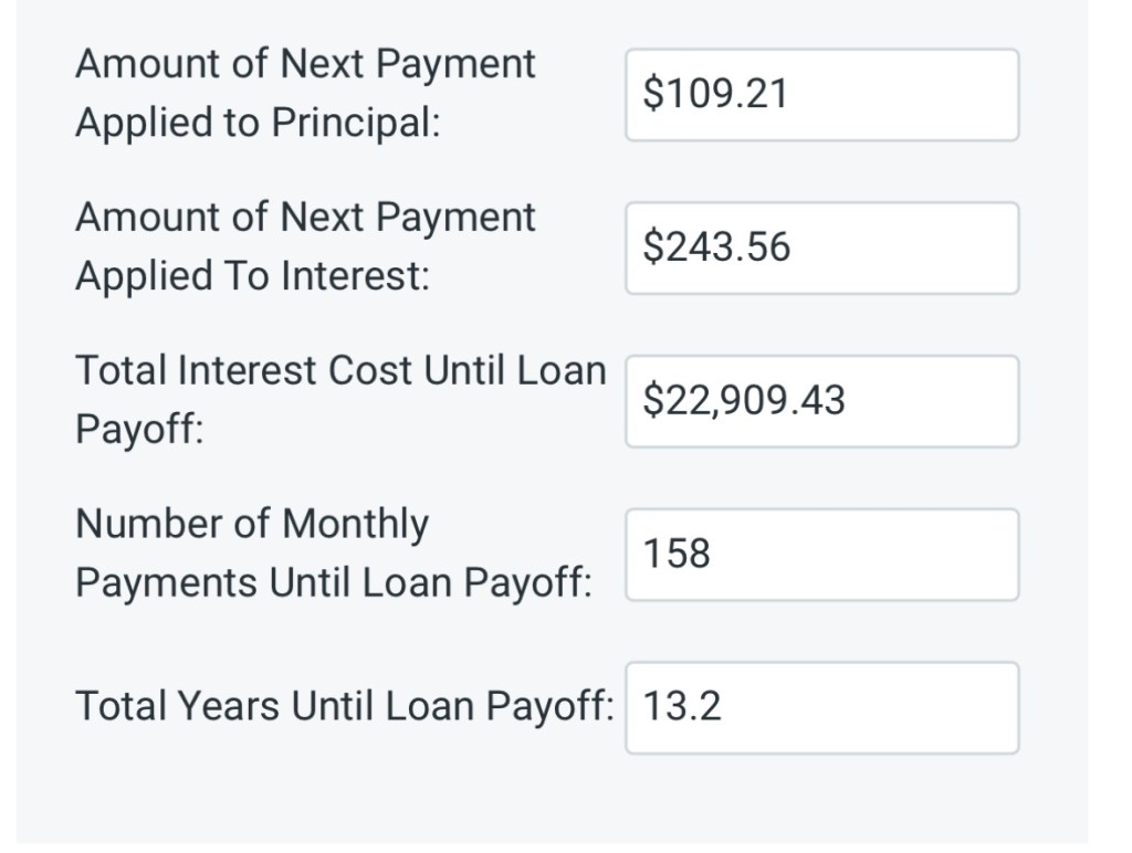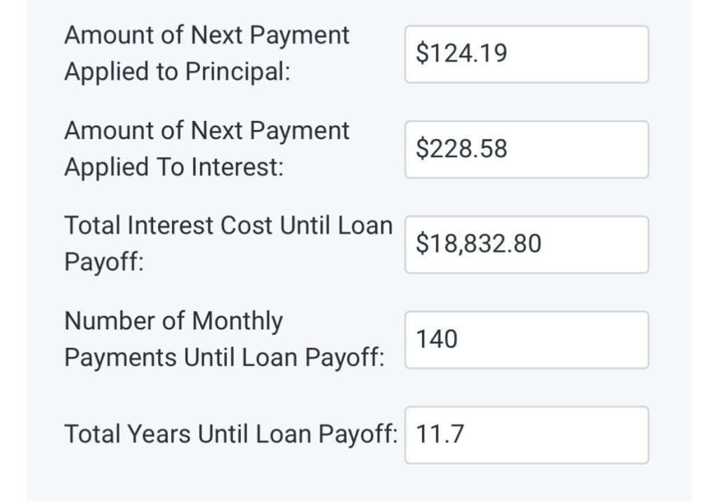 Previously, we have talked about saving up and making large payments at once to reduce interest. We were finding it difficult to calculate the total loan interest, especially if we were already making payments for some time. I found this calculator (1) from Financial Mentor that replicated what I did manually in Google Sheets.