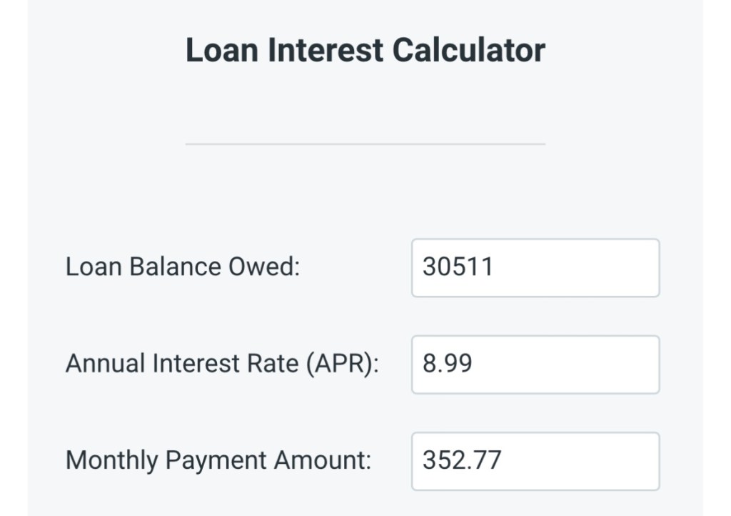 (1) Financial Mentor Loan Interest Calculator https://www.financialmentor.com/calculator/loan-interest-calculator