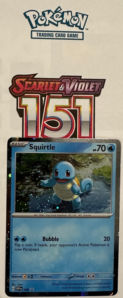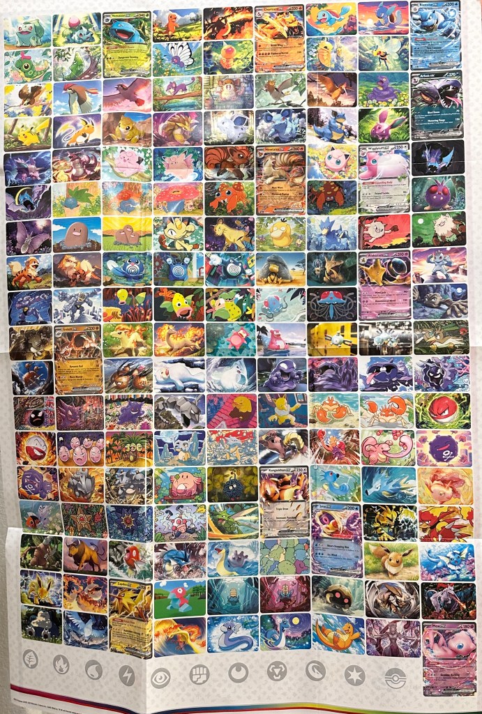 Yesterday, we received our Poster Collection box and our Scarlet and Violet-151 ETB. We bought it on tcgplayer for $24. Pokemon Center was selling it for $15. For $24, it’s not worth 3 packs, foil versions of Bulbasaur, Charmander, and Squirtle, and the poster. But, and a big but, the poster is amazing and massive. It’s two sided. One side shows all the Pokemon shadows in pokedex order. This same pattern is on the outside of the box. The other side shows all the Scarlet and Violet-151 card’s through 151. As expected, we didn’t get much from the three packs. The poster was a delight. If you can get it for less, it’s worth it. themandalorian approves. Now to get some poster tape.