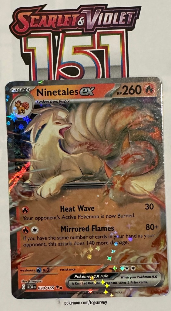 Our best pull was Ninetales EX. The art work is quite good. It was fire pulls that came through for us. I love the holo treatment on the energies. They look badass. Our small sample of pulls confirms that it will be hard to pull good cards in this set.