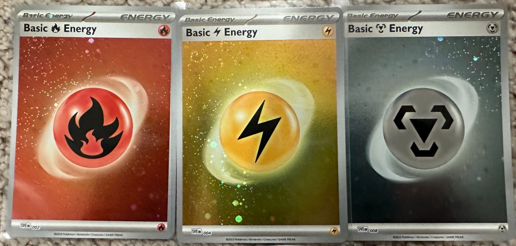These holo printed energies were a pleasant surprise. I can never look at an another energy the same way again. They are better than the hyper rare, gold energies. I have no idea how we pulled 3 in our 9 packs. They seem common and show up in the energy slot.