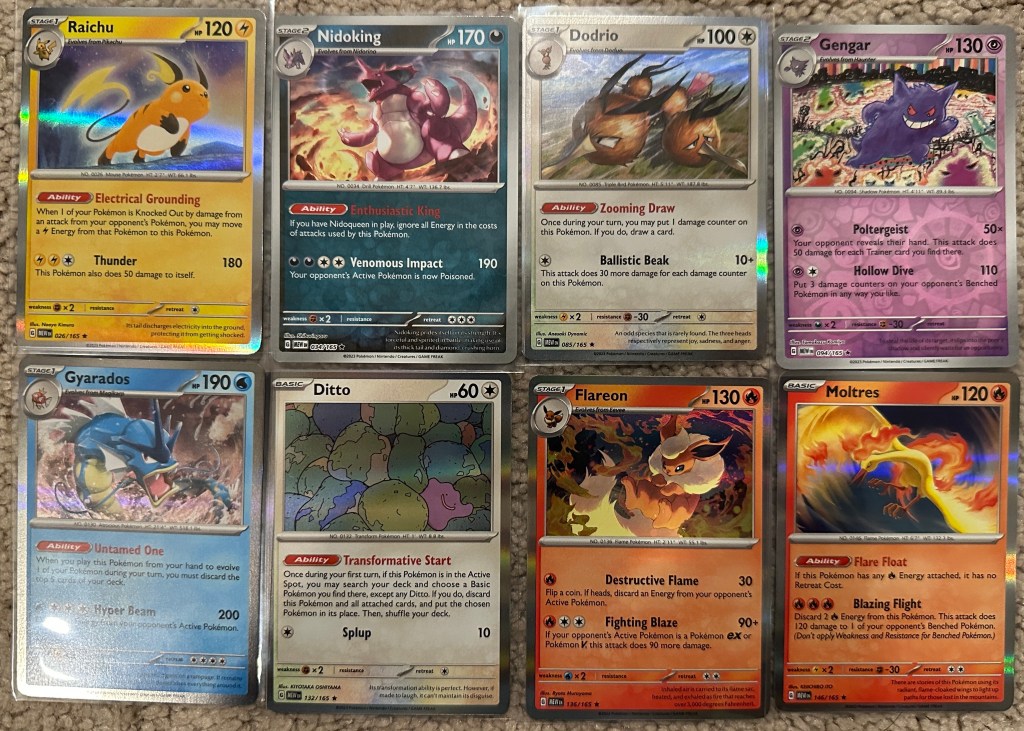 We got some nice rares. The Gengar and Gyardos are the favorites here. Flareon and Moltres were a dupe from the Collection Box. Dodrio we have three. The Ditto artwork is underrated. We were surprised some rares are worth more than $1 as we have seen in other sets. From pricecharting.com: