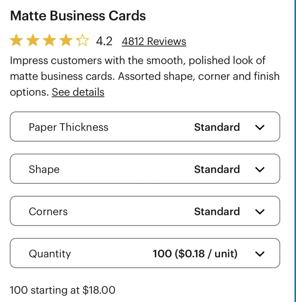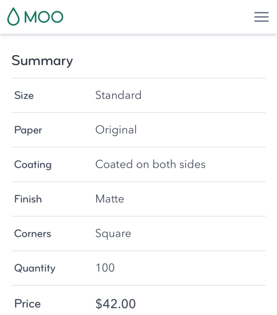 We found Moo on Instagram advertising to us. The prices are double Canva and Vistaprint. We can’t justify trying out Moo business cards currently. We’d rather invest that in sustainable shipping and packaging.