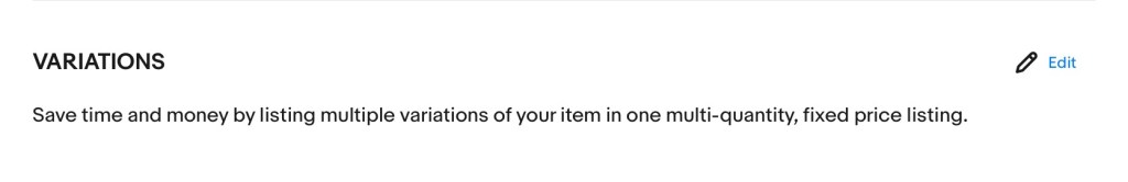 Note: When you edit in the mobile app, the Variations portion is missing. It’s best to edit on the website for these listings.