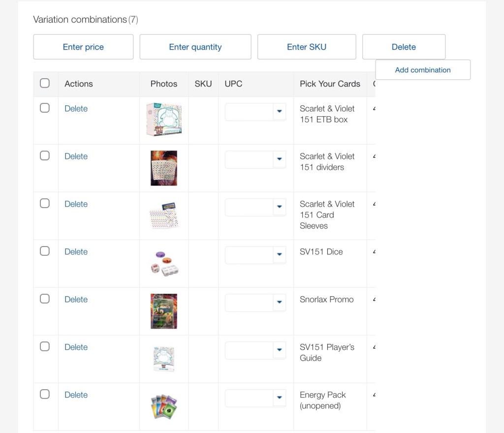 Step 8: Add in your photos, prices, quantities, SKU, and UPC’s as needed.