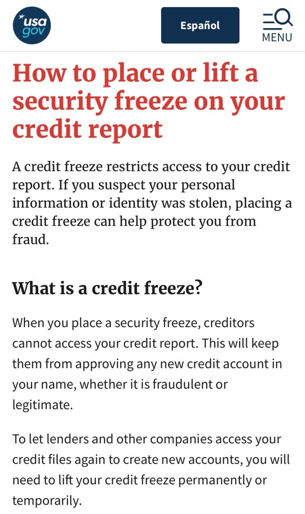 This governmemt site may disappear, so we are posting screenshots and links on how to freeze your credit.